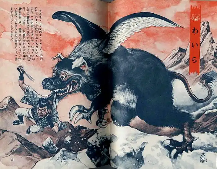 Персонажи традиционной мифологии - кот Кайдан, водяные-Каппа, горные оборотни вороны Тэнгу(мастера и хранители секретов боя катанами и нагината) , семи-хвостая лисица-Кицуне, сильные но глуповатые черти Они, демоны глубин Сёдзё. Отсутствуют Дзасики-Вараси добрые домовые в облике маленькой девочки, и Тянгу енотовидные собака, добродушные толстячки. В общем обычные мифологические персонажи, у скандинавов или эвенков и пострашнее встречаются, например Корабль Мертвецов построенный из ногтей и волос покойников или келле людоед.