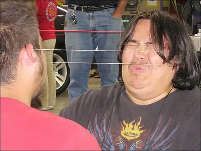 Проигравшим считается тот, кто первый закричит или у кого с уха слезет резинка.