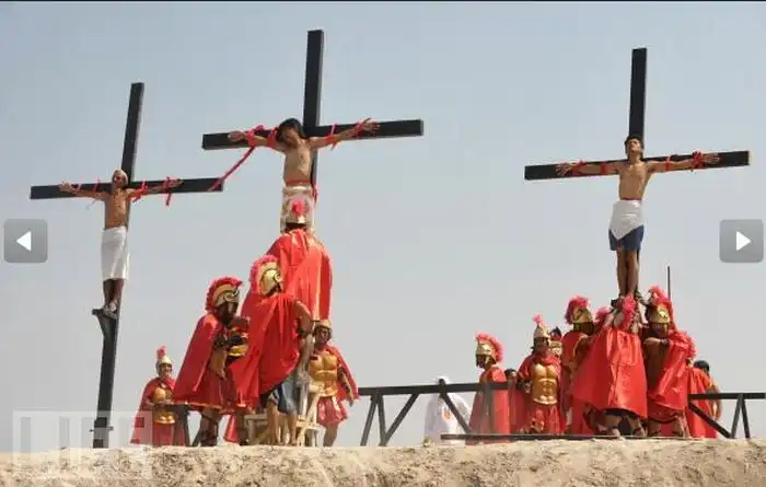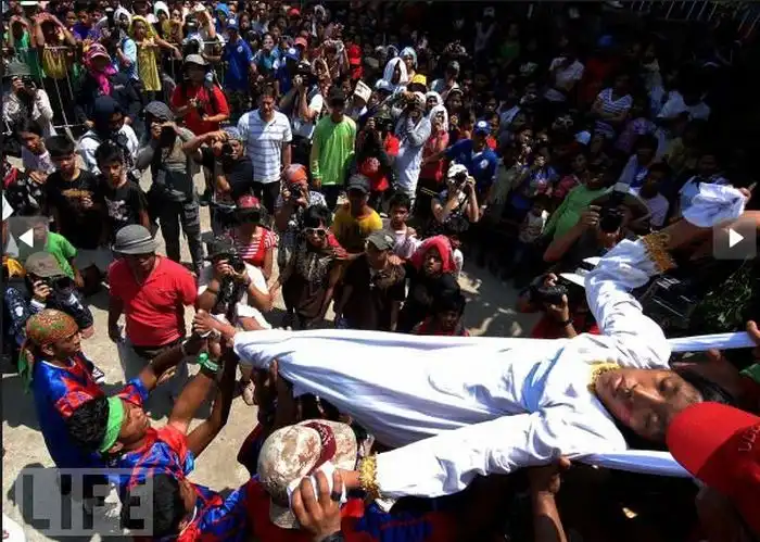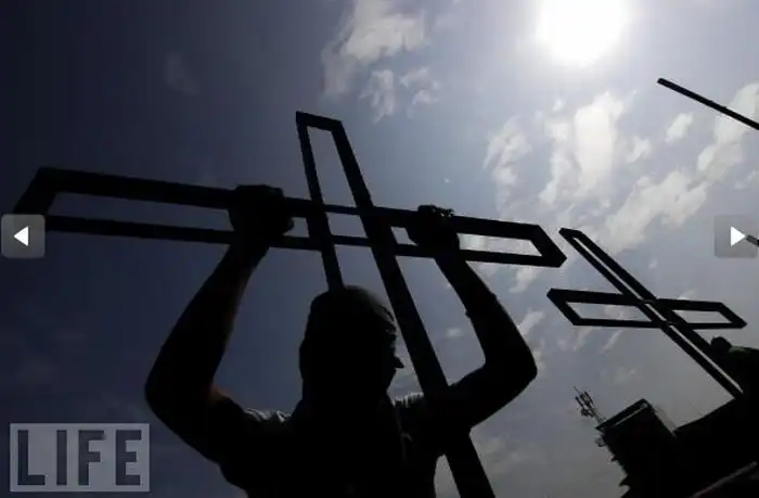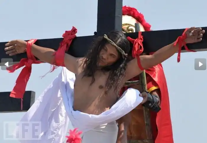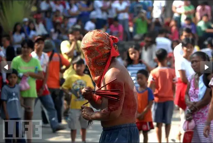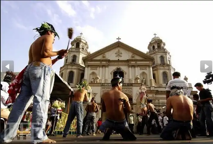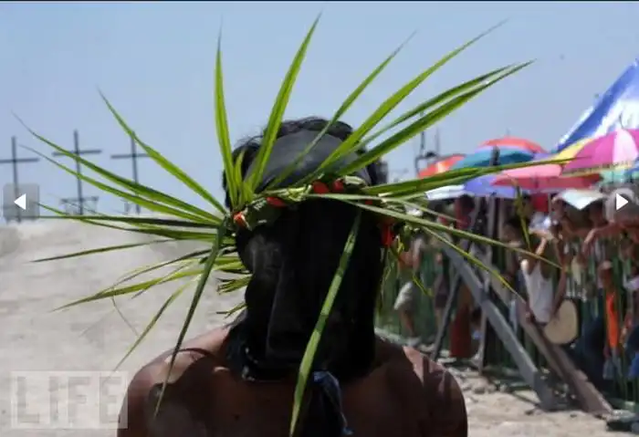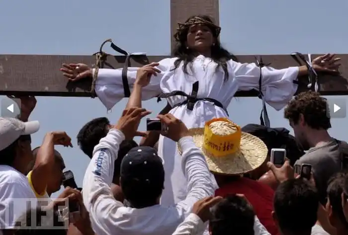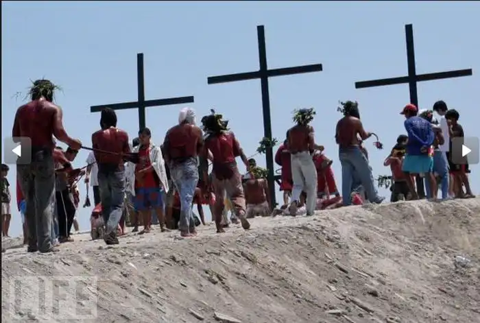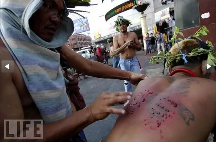 На фото католики в страстную пятницу.Католическая церковь к таким обрядам относится с недовольством, считая их суеверием.
