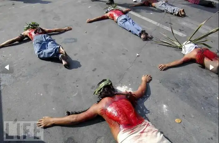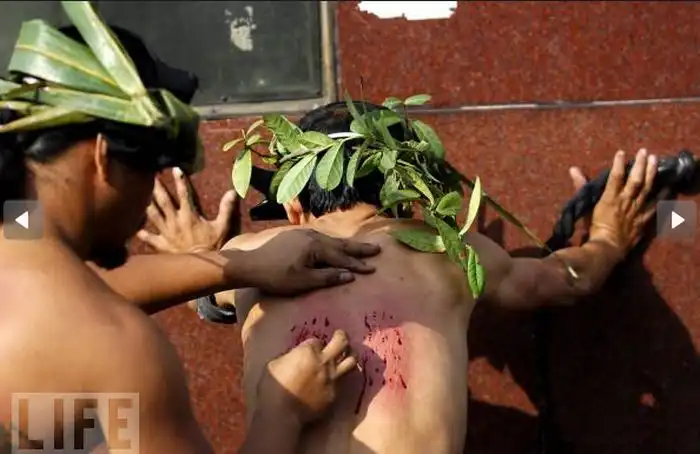 Да ну! Фигня все это самобичевание! Вера должна быть внутри каждого человека, а не выставляться на показуху! То, что представлено на картинках--чистой воды фанатизм, гребаные сектанты не знают уже как привлевлечь на свою сторону людей. Вообще в мире существует три основные религии- христианство,буддизм и ислам, но ни в одной из них не призывали заниматься самобичеванием! Все это ложные религии