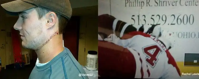 Неприятная история произошла с одним хоккеистом, во время игры ему порезали шею, картина ужасная.
