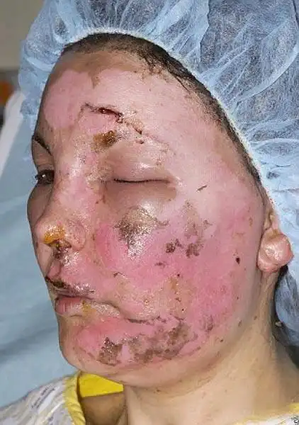 Лицо Давинии было обожжено так, что врачи не смогли наложить ей повязку и лишь изготовили импровизированную маску…