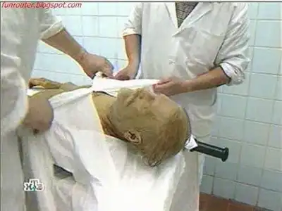 Это НАША история, которая гуманизмом не страдает, и через 100 лет наши потомки будут удивленно изучать наши "подвиги". То что делают с телом этого несчастного человека, который оказался в НЕ нужное время в НЕ нужном месте, теперь уже простой эксперимент и разгадка секрета Египетских мумий.