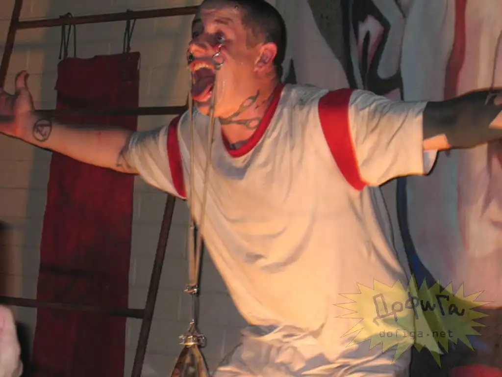 евушка Гнузия . Она помошница фокусника , а во рту пирсинг , специально перекашивающий рот . Верхняя иголка собирает губу.
