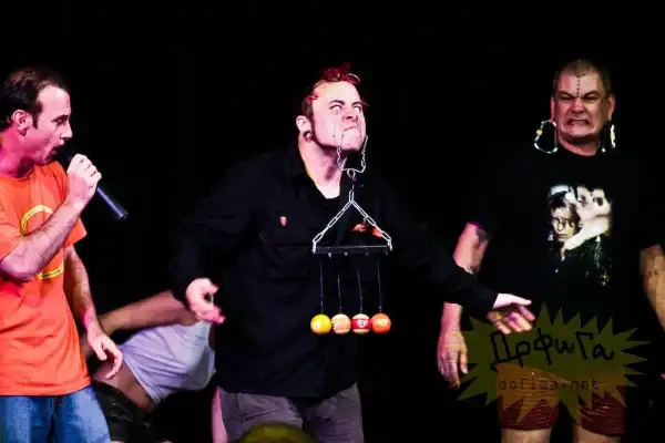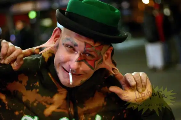 Ронаван Даг , забивает в нос гвозди и удерживает на щеках около 3 кг.