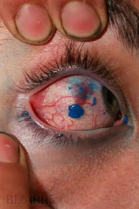 Татуировка глаза , это типо последнего писка моды в США, даже передача про это была, там на глазах тату в тюрьме делали, как раз синим или красным.