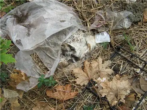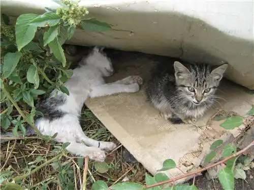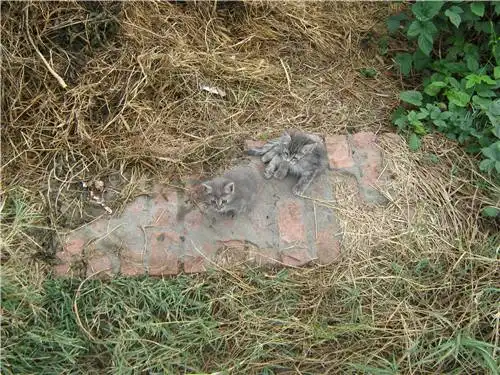 Мы пришли сюда по звонку женщины, живущей по соседству. Она рассказала, что сюда постоянно выбрасывают котят в коробках и ящиках. Мы, продираясь сквозь плющ, обошли двор и обнаружили двенадцать живых и очень много мертвых, а точнее, умерщвлённых котят. Некоторые из них по двое и по одному были упакованы в кульках, некоторые - в коробках, а самые маленькие - просто в тряпках, крепко завязанных на узел. Они умерли, не сумев выбраться...