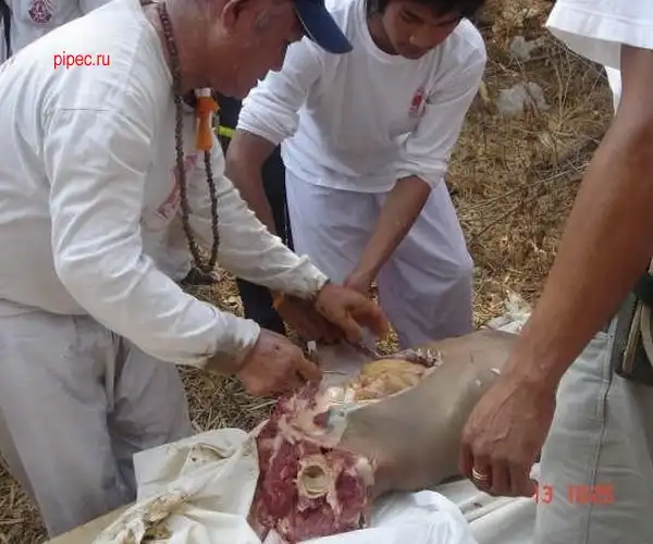 или может не его ели - там они просто ели мясо. может баранина, а его разделывали как практика, как сказала Shivaree.