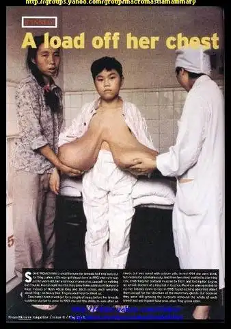 Понятно , что общепринятое выражение, что девушка должна быть с большой грудью - тут не уместно. Для Ting Jiafen, нормальной жизни уже не возможно после того как её грудь выросла. Мышцы груди Ting растянулись на 10 см (4 дюйма), и в конце концов она даже не могла передвигаться без помощи двух медсестер, чтобы поддержать ее грудь. Для Ting, жизнь стала не выносимой и казалась адом.