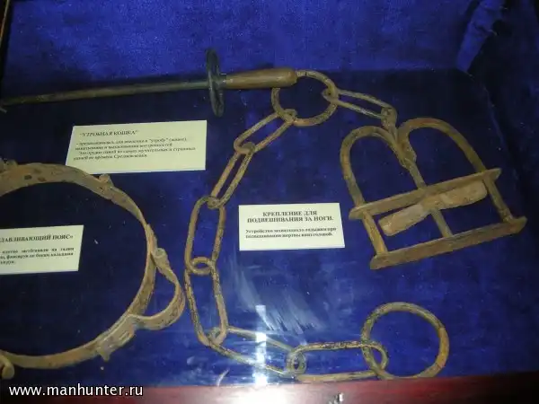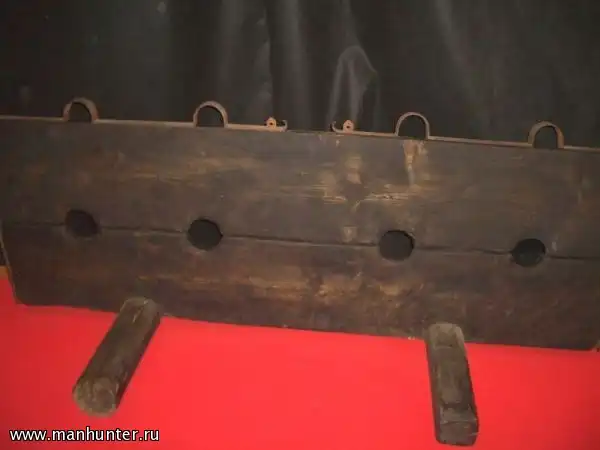 Крепление для подвешивания за ноги. Устройство захватывало лодыжки при подвешивании жертвы вниз головой.