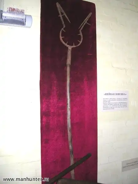 Шейная ловушка представляла собой кольцо с гвоздями на внутренней стороне и с приспособлением, напоминающим капкан, на внешней стороне. Тюремная стража использовала ее, дабы контролировать и подчинять себе жертву, находясь при этом на безопасном расстоянии. Это устройство позволяло удерживать заключенного за шею так, чтобы его можно было вести туда, куда требовалось конвоиру.