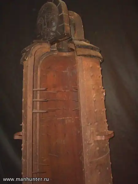 "Нюрнбергская дева" - орудие смертной казни или пытки эпохи Средневековья, представлявшее собой железный или деревянный шкаф-саркофаг, напоминающий по форме фигуру женщины, одетой в костюм горожанки XVI века. В него помещали обвиняемого, створки дверей закрывали и тело несчастного пронзали десятки острых шипов-кинжалов, расположенных так, что ни один из жизненно важных органов не был задет, поэтому агония длилась довольно долго. Один из ранних прототипов этого орудия был создан и впервые использован в подземелье секретного суда в Нюрнберге. Первый зафиксированный случай судебного разбирательства с помощью "Девы" относится к 1515 году: наказание постигло виновного в подлоге, который промучился внутри этого пыточного шкафа три дня.