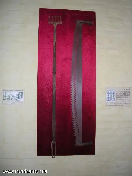 С помощью ручной пилы осуществляли одну из самых мучительных казней, пожалуй, более страшную, нежели смерть на костре. Палачи распиливали осужденного, подвешенного вниз головой и привязанного ногами к двум опорам. Этот инструмент использовался как наказание за различные преступления, но особенно часто его применяли в отношение содомитов (гомосексуалистов) и ведьм. Известно, что пилу широко употребляли французские судьи при осуждении ведьм, которые забеременели от "дьявола ночных кошмаров" или даже от самого Сатаны.
