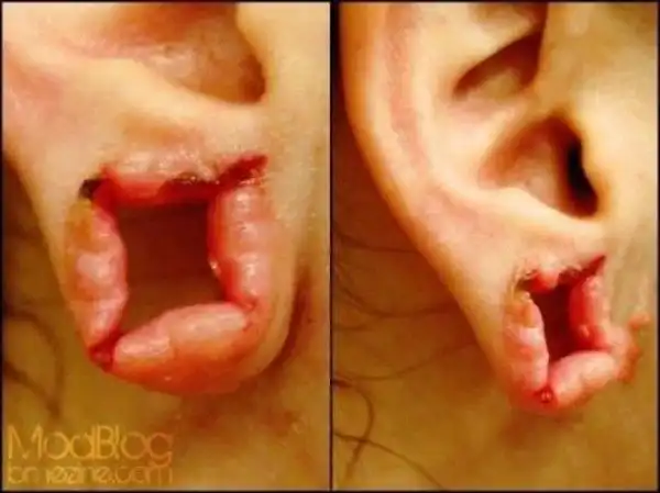 даже если сделать пирсинг в специализированном салоне, не говоря уже о всяких подпольных забегаловках, нельзя быть уверенным в том, что не начнётся сильнейшая аллергическая реакция или заражение. рубцы, эти отвислые дырявые мочки после тоннелей. выглядит жутко. зачем себя уродовать, стоило ли это того?
