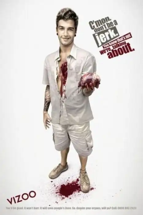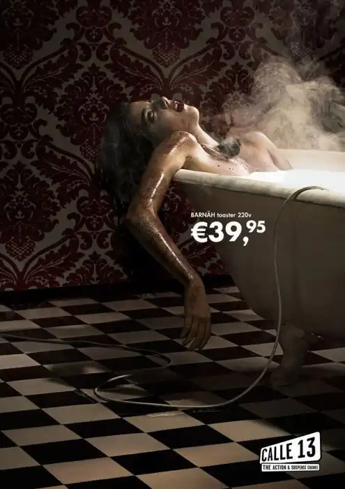 Тему “кровищи и расчлененки” креативщики используют независимо от категории рекламируемых товаров: и в рекламе молока можно встретить рассыпающегося на части ребенка, и рекламе телеканала ужасов можно увидеть истекающего кровью мужчину с шестью ножами в груди. А уж в социальной рекламе в защиту животных и общественной безопасности и здоровья людей устрашающий фактор – один из самых излюбленных приемов.