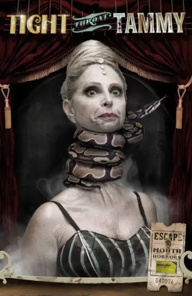 Идея принтов анонсирует шоу “ужасов рта” (Mouth of Horrors), посещение которого предлагается избежать, приняв Mebucaine.