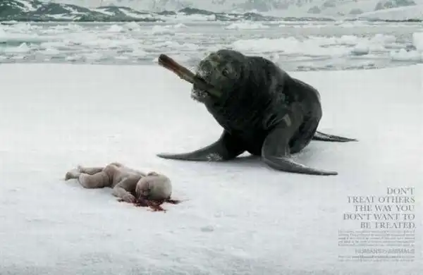 Социальная реклама о правах животных: Тюлень. Не обращайтесь с другими так, как вы не хотели бы, чтобы обращались с вами.