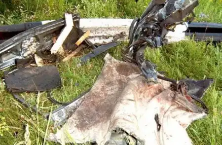 кстати , чтобы так расхерачиться не обязательно слишком быстро ехать ! я 10 лет по трассе мотаюсь и ТАКОГО насмотрелся !!!!!!!!! этим ещё повезло - быстрая смерть , а вот когда заживо горят , орут , а ты ближе 20 метров к машине не можешь подойти из за жара от огня - вот это реально УЖАС !!! !!!!!!!