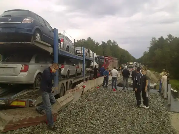 24.08.2011 На трассе Томск-Новосибирск произошло лобовое столкновение "Автовоза" двигающегося со стороны Новосибирска и "грузовика" двигающегося со стороны Томска, дтп произошло на мосту где осуществлялся капитальный ремонт, была демонтирована половина моста, движение на этом участке осуществлялось по сфетофорам. Как объяснил водитель "грузовика", что у него отказали тормоза..!