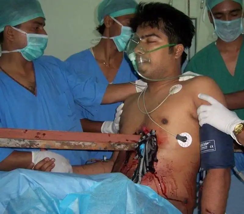 я что-то сильно сомневаюсь, что португалец решил прыгнуть с металлическим уголком ради спорта. Скорее на стройке или еще где-нибудь навернулся и напоролся!