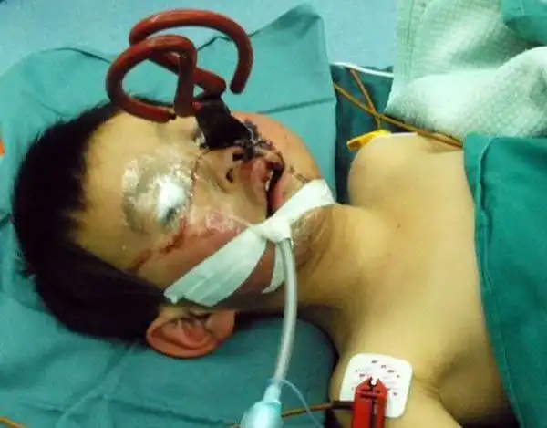 В Китайскую больницу привезли маленького мальчика, у которого из лица торчали ножницы. Благодаря старанию врачей , ему удалось спасти жизнь и сохранить зрение.