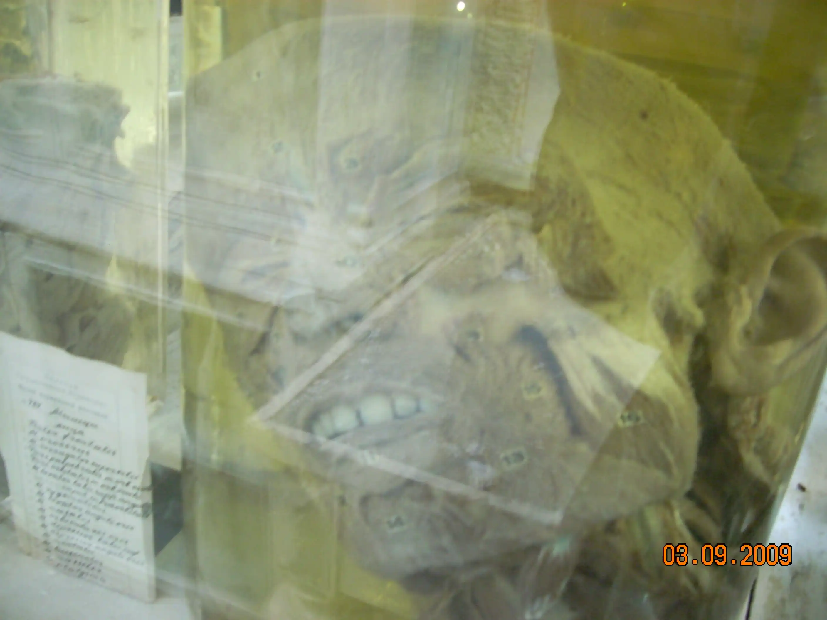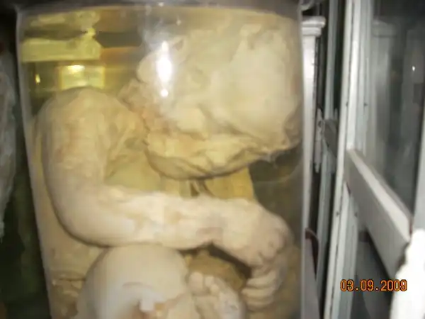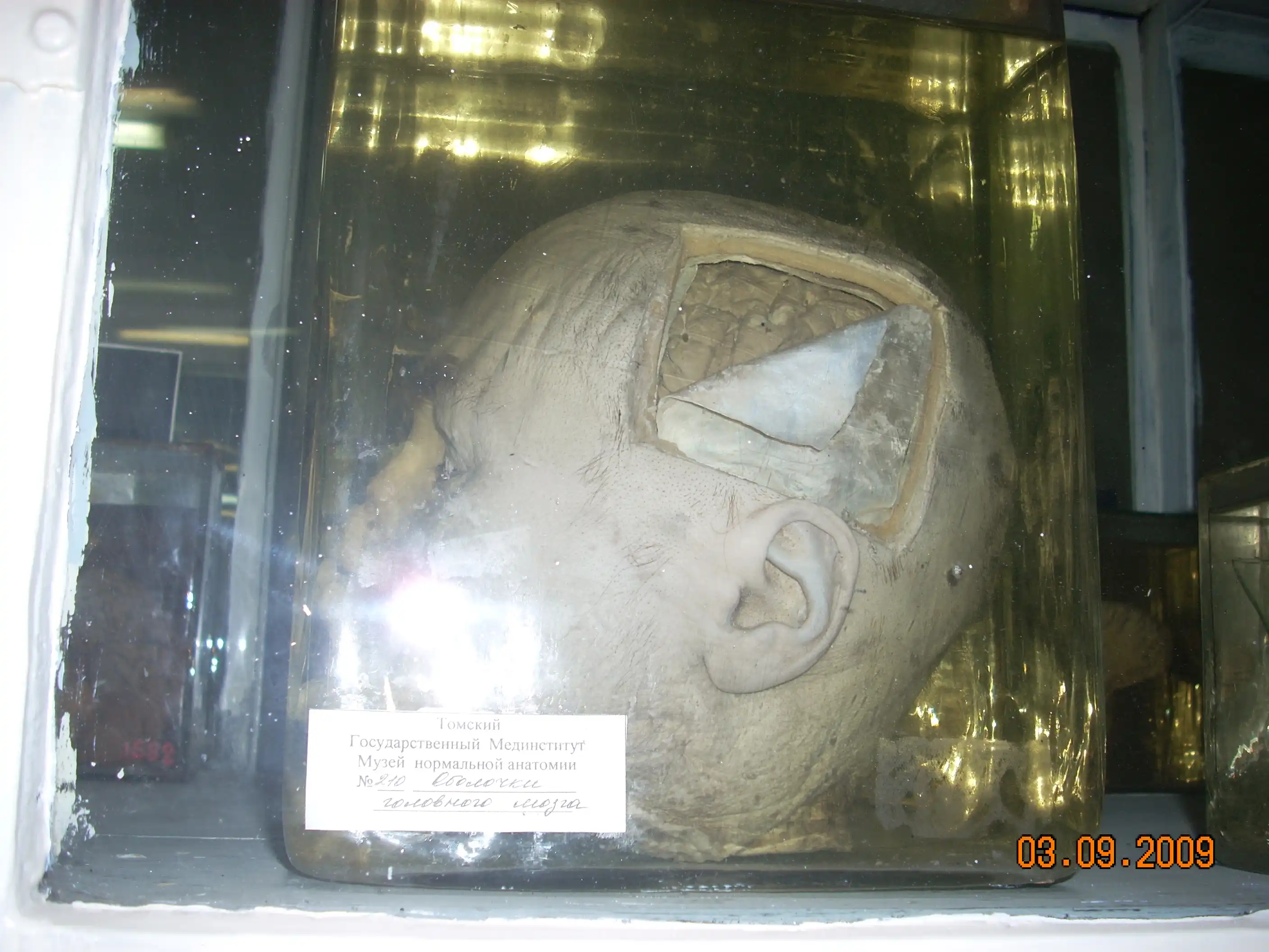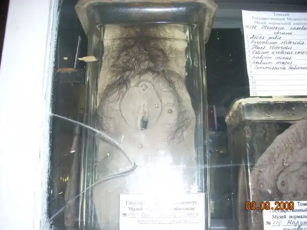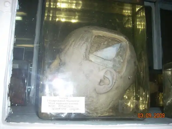 В 1997 году ездили классом, был там один экспонат, у него башка торчала из раствора, кто-то из одноклассников сдвинул крышку и пальцем ткнул.... fuu