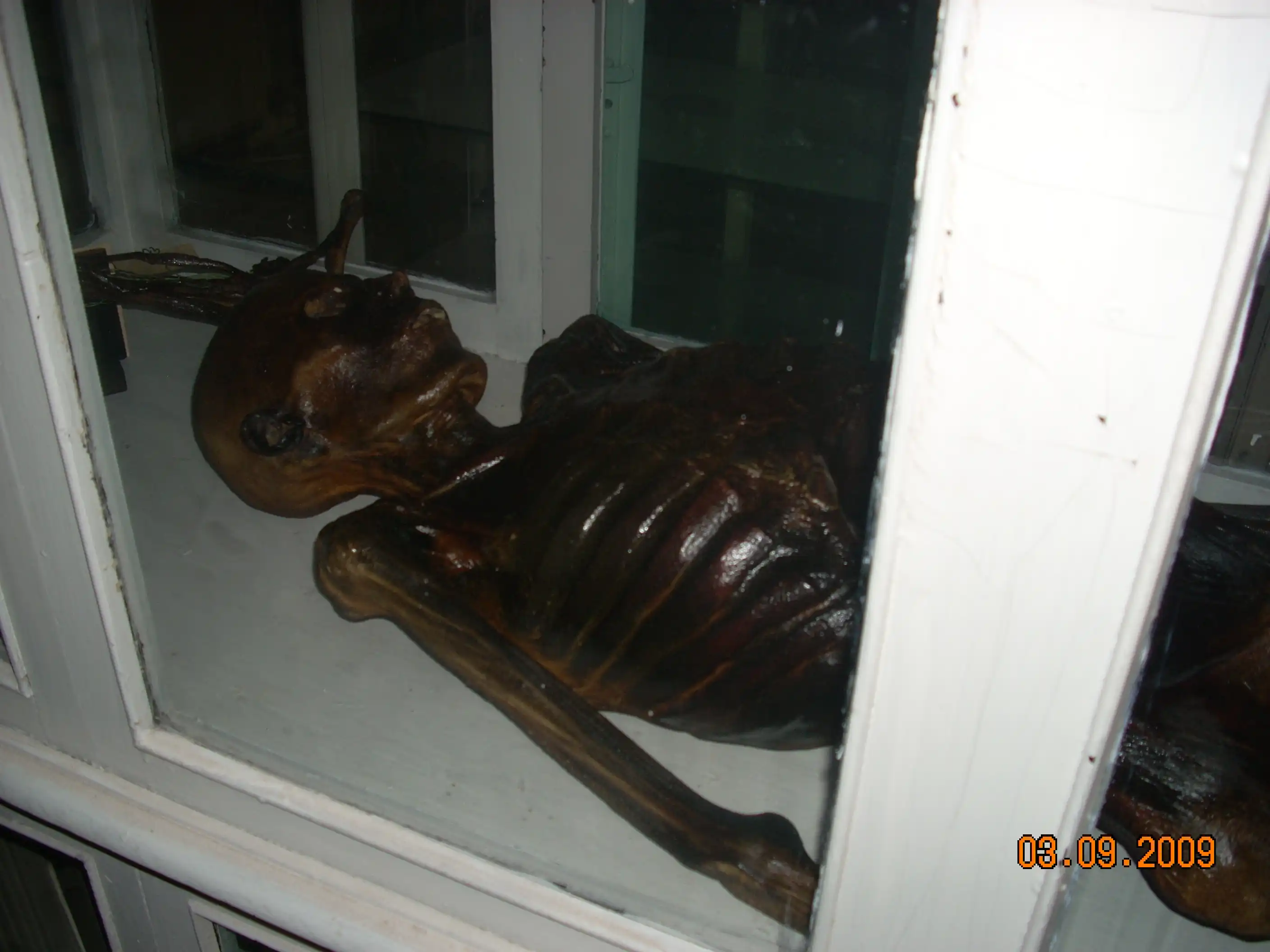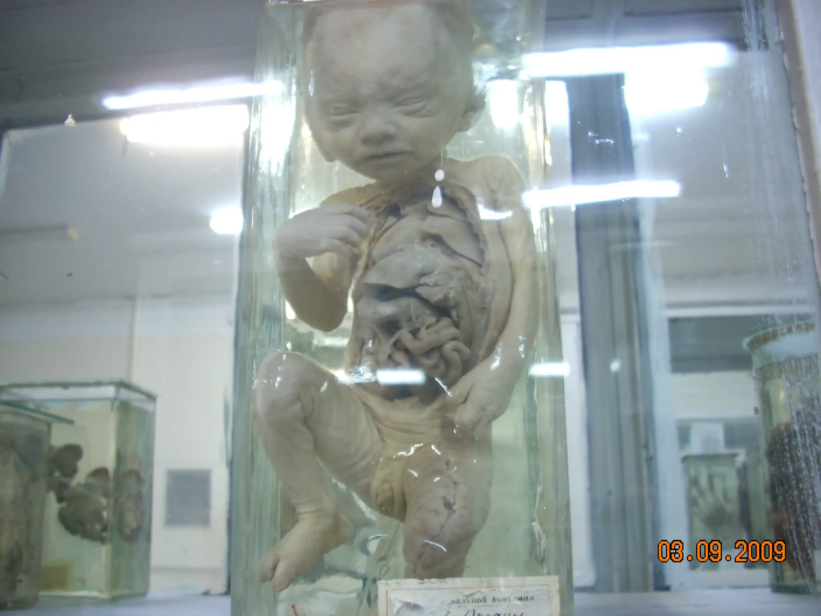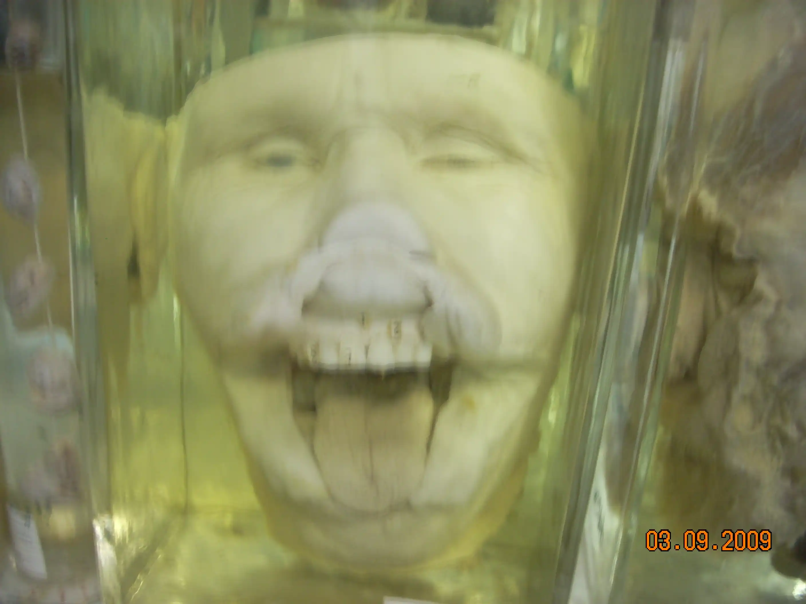 В 1997 году ездили классом, был там один экспонат, у него башка торчала из раствора, кто-то из одноклассников сдвинул крышку и пальцем ткнул.... fuu