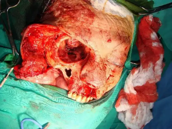 Саркома верхней челюсти. Остеогенные саркомы верхней челюсти встречаются чаще в молодом возрасте, исходят из периоста коркового или губчатого вещества кости, чаще альвеолярного отростка. Растут быстро, а иногда не очень быстро. Резко увеличивают в размерах челюсть и вызывают асимметрию лица.
