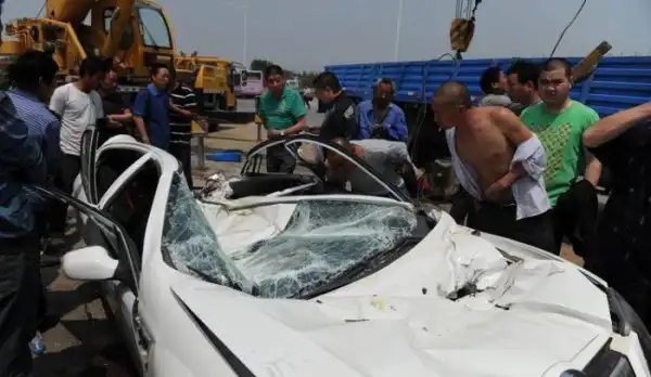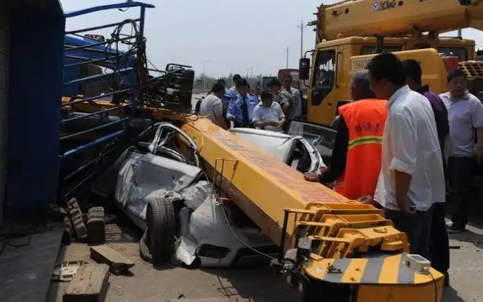 12 тонн железа рухнули на легкой автомобиль, в котором находилась семейная пара с двухлетним ребенком.