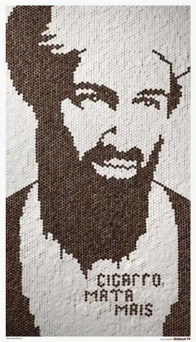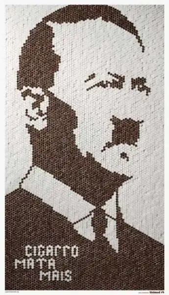 А вот и уже упоминавшиеся на страницах нашего сайта произведения, выложенные из сотен сигарет и слоганом: "Курение убило больше чем они"
