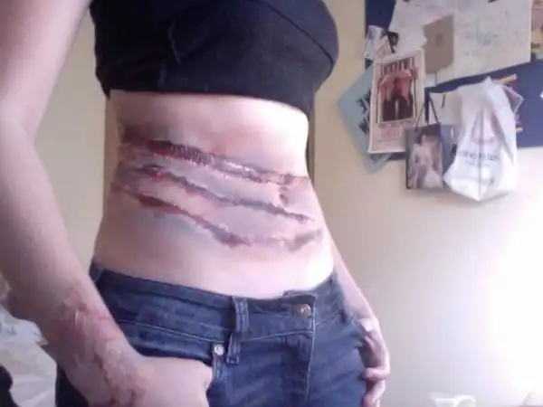 Девушка живет в Глазго. Утверждает, что такие шрамы у нее после нападения росомахи.