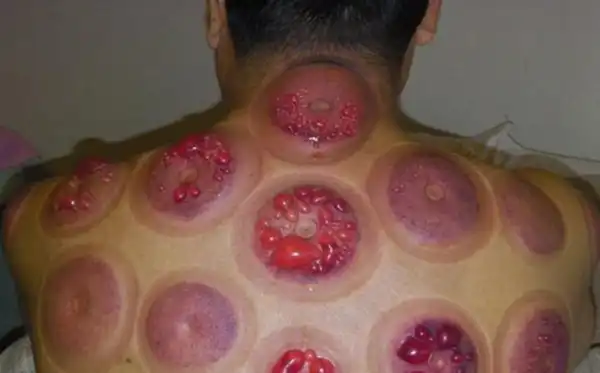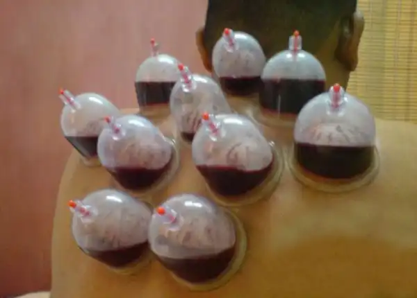 Процедура такова: пациенту определяют область, на которую будет прицеплена банка. Затем, на нужном месте делаются надрезы, а банка ставится на это место и, словно пиявка, высасывает кровь.Считается, что такое кровопускание удаляет застойную кровь, придает гибкость позвоночнику и проясняет сознание.