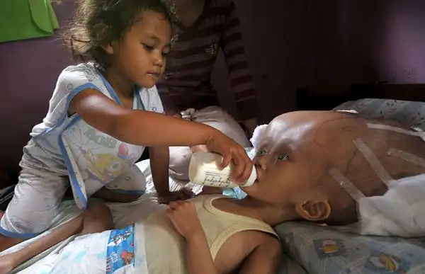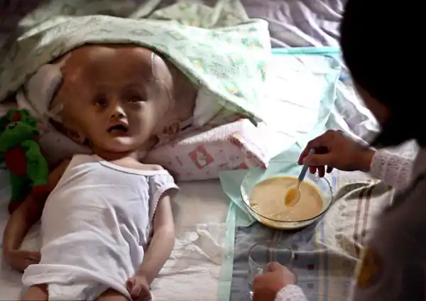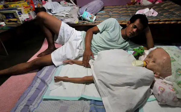 Bogor (Индонезия), девочке уже 3 года, а череп в окружности - более 1 метра. Местные врачи не берутся оперировать малышку, а операция за бугром дорога. Отец, зарабатывающий таксистом 2 бакса в день, не может себе это позволить.
