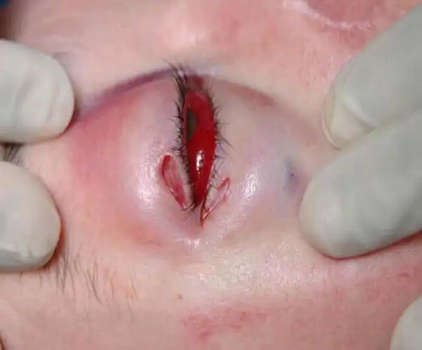 Порой подушка безопасности может нанести немалый ущерб вместо того, чтобы спасти жизнь водителю. Эта 42-летняя женщина пострадала в лобовом столкновении с другим автомобилем на скорости около 50 км/ч. Подушка безопасности сработала как часики, вот только вдобавок резко вытолкнула карандаш, который женщина держала в нагрудном кармане. Канцелярский предмет пронзил ей щеку и веко. К счастью, все обошлось, и глаз удалось сохранить.