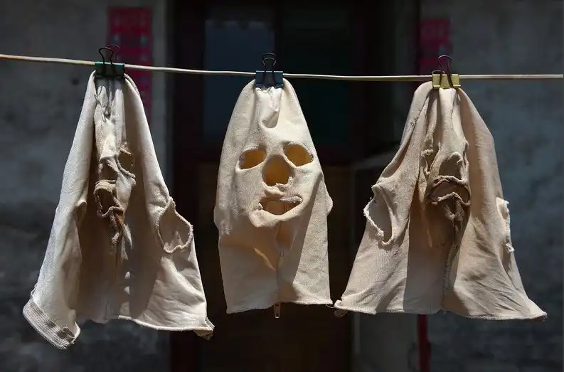 30 мая 2012 года, Фыньян, Китай. - Маски Сян Сяна сохнут на веревке.