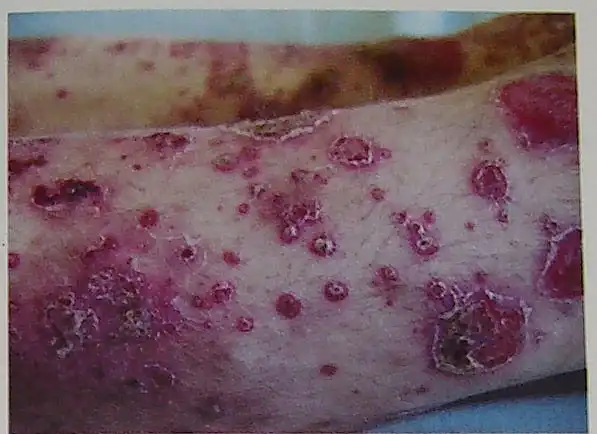 тут многое на фото-обычный вирус папилломы человека,это, грубо говоря,на фотках бородавки, есть у большого процента населения,но находится в спящем режиме, как герпес, передается при тесном физическом контакте, пару фото фолликулит-это там где фото волосы,или голова с гнойниками; акне, грибки и лишаи,как-то так. Так что, будьте осторожны и мойте руки)))