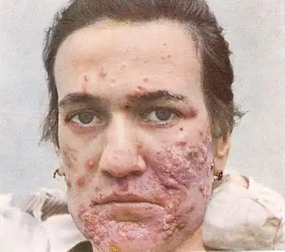 я так заметил, что некоторое количество фото-это просто прыщи, да запущеные, но всё-же прыщи, чего в них такого жуткого? пошёл, помылся со всеми там мылами и шампунями, потом вышел, остыл, и вперёд давить этих сволочей)))