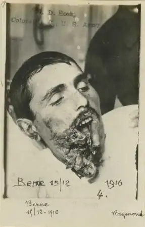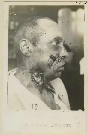 Причина половины этих ранений, тем более рваных - иприт, фозген, зарин. Страшные яды, надышавшись которыми ты просто напросто выплюнешь на землю свои легкие. Ровно после таких последствий и запретили использование боевых газов, Гаагская конвенция.