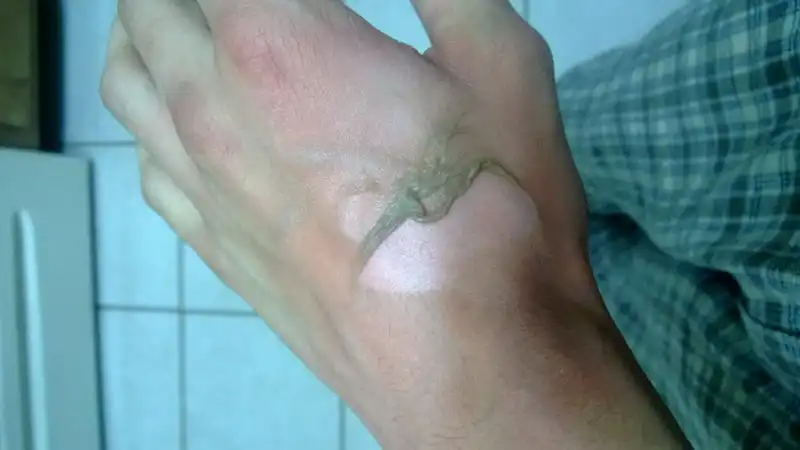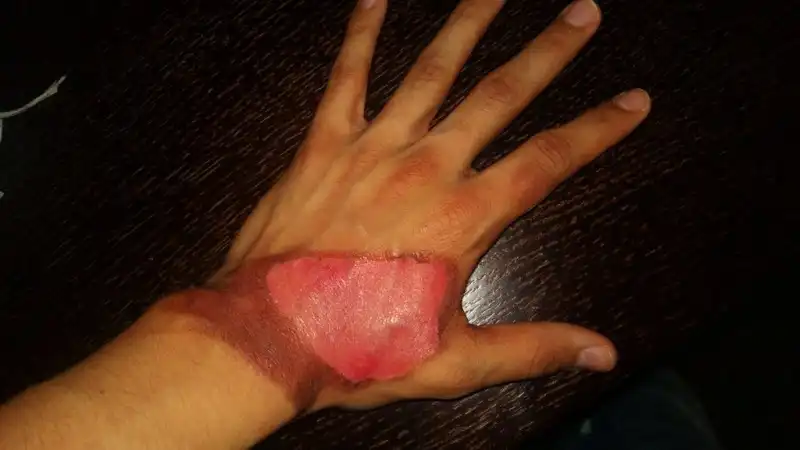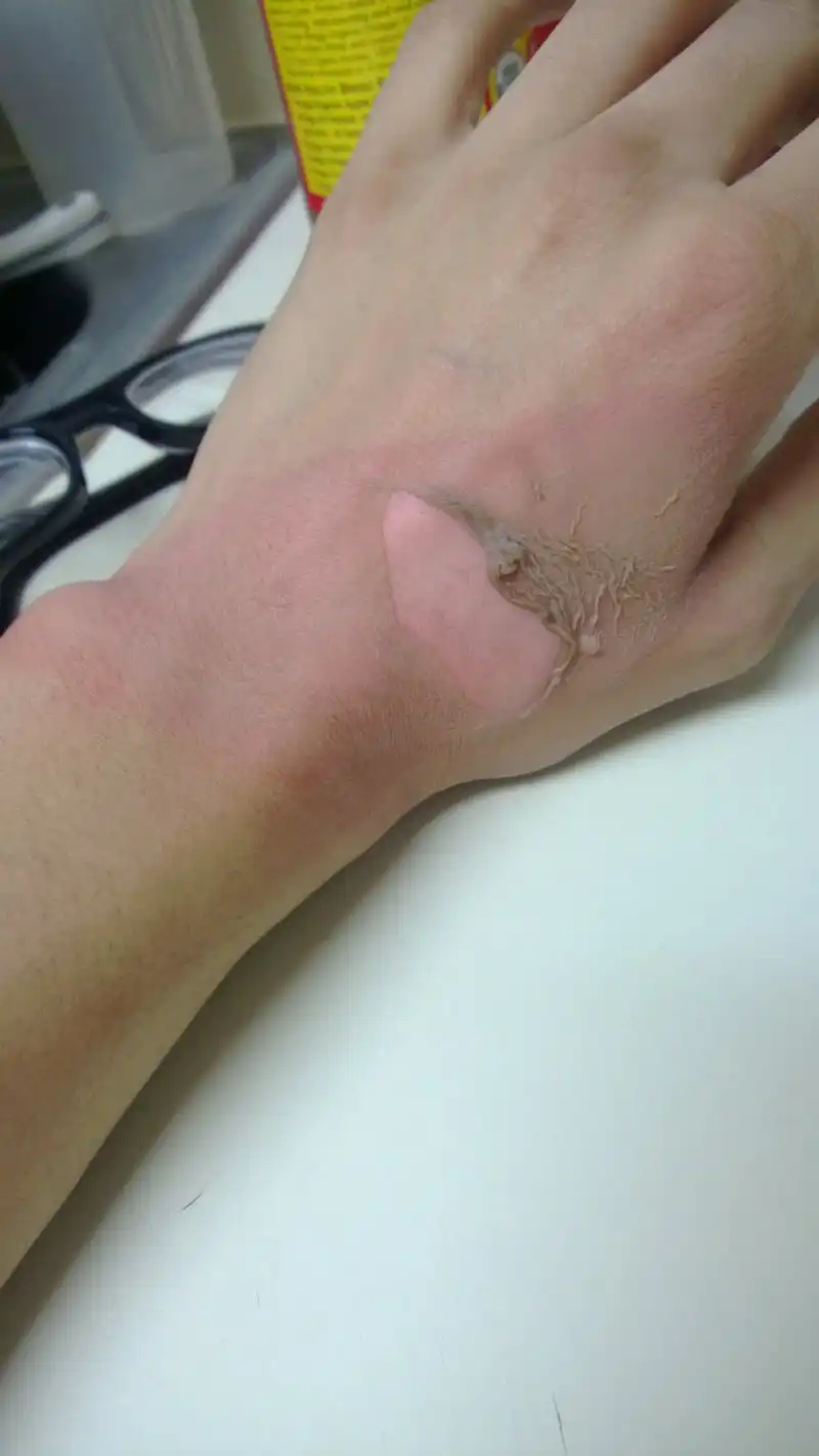 Постепенно проявился след. Ощущение было такое, что рука горит. Потихоньку начали проявляться первые волдыри