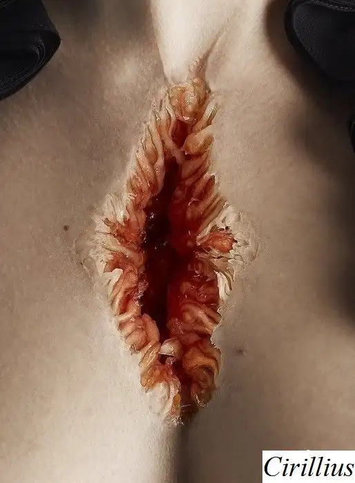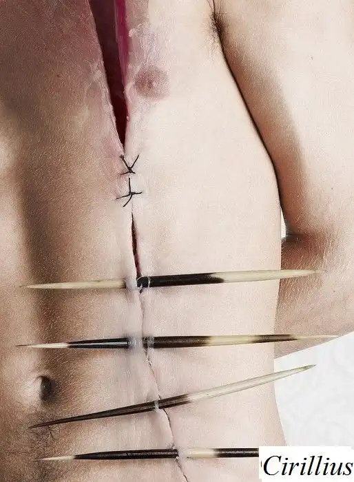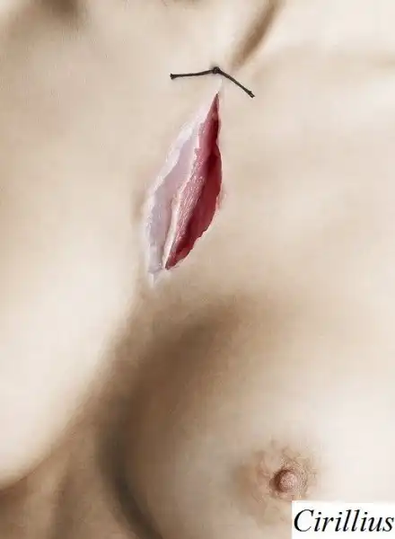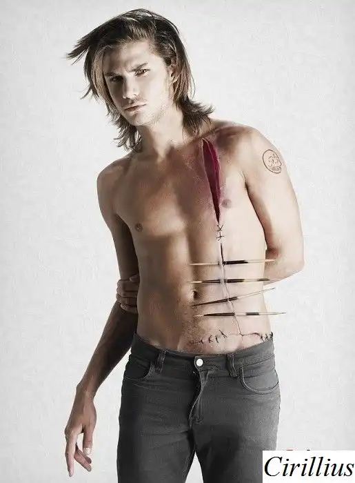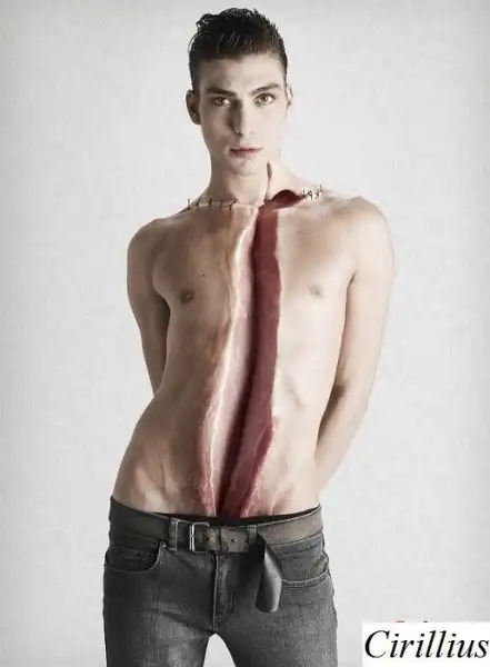 Да о чём там говорить? Даже из глубоких порезов органы не высыпаются, кости не торчат.. И сами порезы на кусок буженины похожи. Фотожопер явно не смотрел жести перед работой.