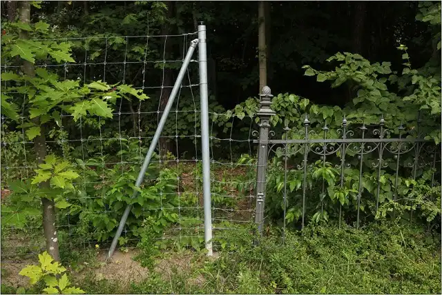 Сразу за территорией советского гарнизонного кладбища находятся какие-то объекты Бундесвера. Утраченные участки кованой кладбищенской ограды военные заменяют незатейливым забором из труб и сетки: