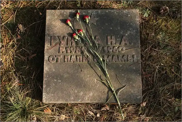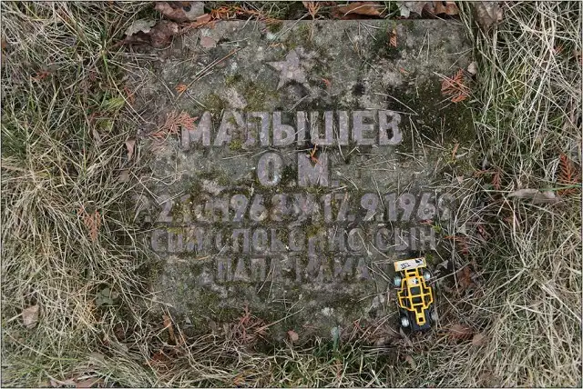 Нужно добавить, что на территории северного сектора кладбища тоже есть могилы советских солдат, погибших в годы Второй мировой войны. Таких могил там около сотни. Одна большая братская могила, в которой похоронен 71 человек, и еще 25 индивидуальных могил. Как правило, речь идет о неизвестных солдатах, останки которых были обнаружены через сколько-то лет после окончания войны. Эти 25 могил разбросаны среди могил военнослужащих Западной группы войск. Первоначальные планы саксонских властей предполагали сохранение одной только братской могилы. Отдельные же могилы предполагалось уничтожить, что в общем-то противоречит немецким законам и упомянутому российско-германскому соглашению. Теперь эти планы, вроде как, пересматриваются. Не исключено, что это одна из причин задержки реконструкции. Вот одна из этих могил: