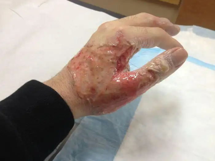 Ожог кипящим маслом по праву считается одним из самых опасных и жутких, ведь горячее масло не так уж и просто сразу убрать, поэтому оно воздействует на кожу намного дольше, чем, скажем, кипящая вода. Фотографии последствий одного из таких ожогов кипящим маслом вы можете посмотреть в продолжении поста. Но далее фотки не для слабонервных..