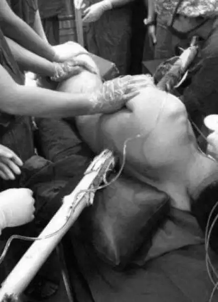 Грузовик этого мужика в результате аварии врезался в перегруженный лесовоз. Деревянное бревно длиной 5,5 метров пробило лобовое стекло и пригвоздило мужика к креслу. Спасателям пришлось доставлять пострадавшего в больницу месте с деревяхой и сиденьем. Операция по извлечению постороннего объекта длилась четыре часа. Врачи уверены, что пациент выживет, так как бревно не задело сердце.