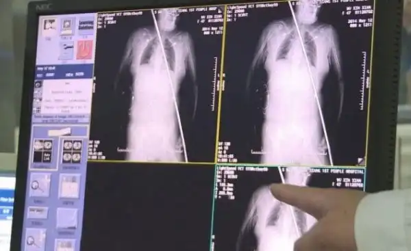 42-летняя Ву Синьсян работала на стройке в округе Дучань, провинция Цзянси. Под ней сломалась деревянная доска и она упала с высоты 6 метров на стальной прут, который пронзил ее насквозсь - от бедра до шеи через желудок.
