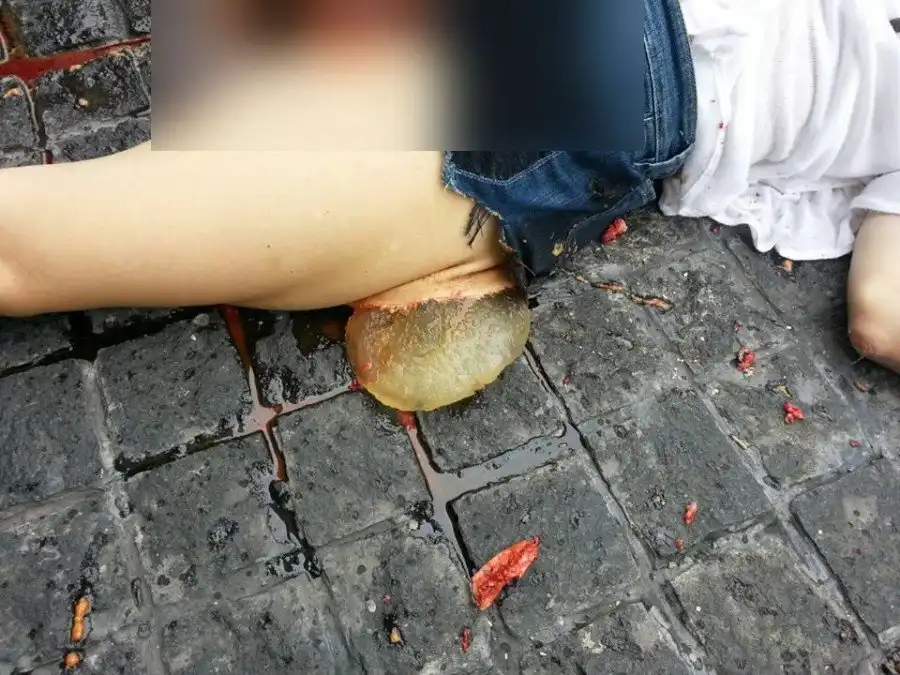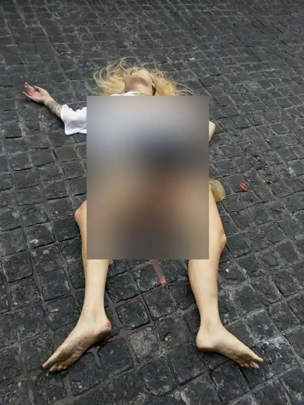 Судя по фото, приземлилась на ноги (перелом обоих бёдер), затем удар пришёлся на 5-ю точку (импланты вылетели), что уменьшило импульс на туловище и голову. Скорее всего, после "приземления" ещё была жива, пока внутреннее кровотечение (органы малого таза) не завершило её существование....