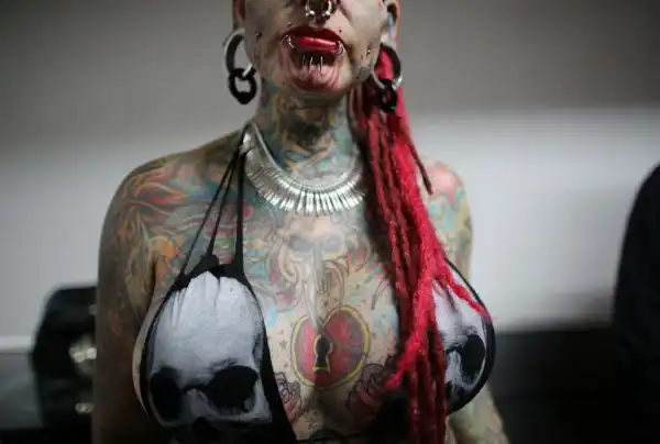 Mary Jose Cristerna, также известная как "женщина-вампир", из Мексики