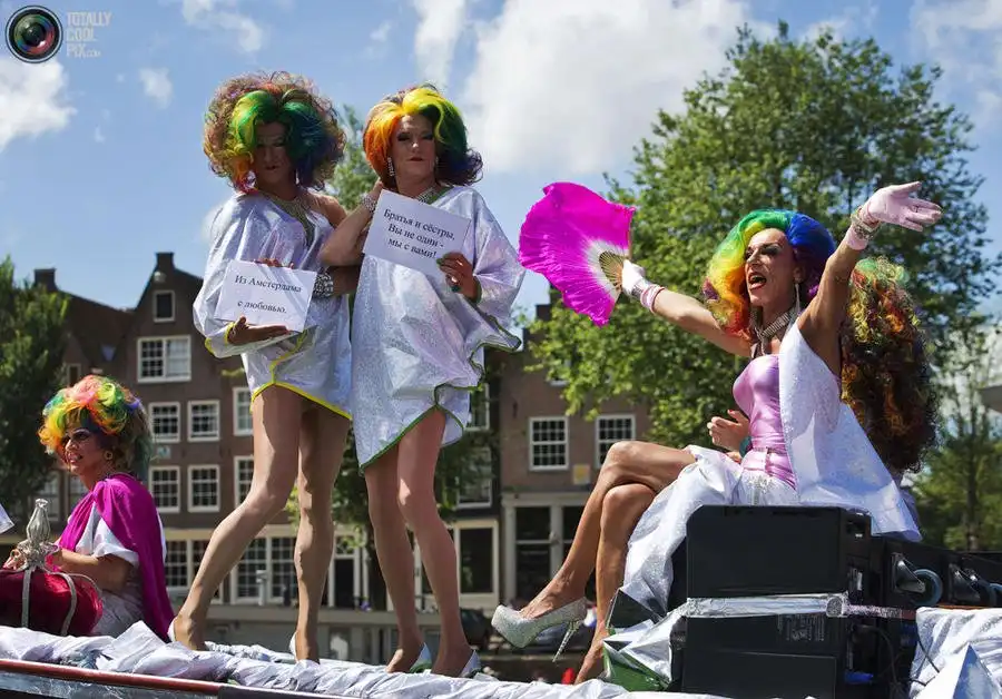 Ежегодно амстердамский гей-парад посещают несколько сот тысяч человек, превращая город в настоящий центр свободной однополой любви. Впрочем, Амстердам славится своими очень либеральными и не всегда понятными россиянам нравами, так что наличие подобного праздника не только не смущает местных жителей, но и откровенно радует. Об этом говорит хотя бы тот факт, что фестиваль, длящийся несколько дней, проходит без каких бы то ни было происшествий и, что характерно, без заметного присутствия полиции.