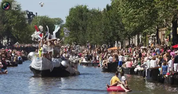 Amsterdam Gay Pride — масштабный фестиваль, длящийся несколько дней в начале августа, во время которого огромное количество людей может заявить о своей гомосексуальности и о гордости по этому поводу. Собственно, благодаря этому параду, первый из которых состоялся в 1996 году, и благодаря легализации однополых браков в 2001 году Амстердам стал своеобразной гей-столицей планеты. Каждое начало августа Амстердам окрашивается в радужные цвета и наполняется многочисленными вечеринками и фестивалями. Главная часть праздника — фееричный парад, проводящийся каждую первую субботу августа на каналах Амстердама, когда по ним проходит 80 всевозможным образом украшенных лодок с участниками парада — геями и лесбиянками. Стартуют корабли в 2 часа дня от Вестердока, затем проходят по Принсенграхт и завершают парад на реке Амстел. Естественно, все набережные в это время забиты до отказа. Первые зрители приходят уже с раннего утра и занимают лучшие места — ставят раскладные кресла, столики с едой.