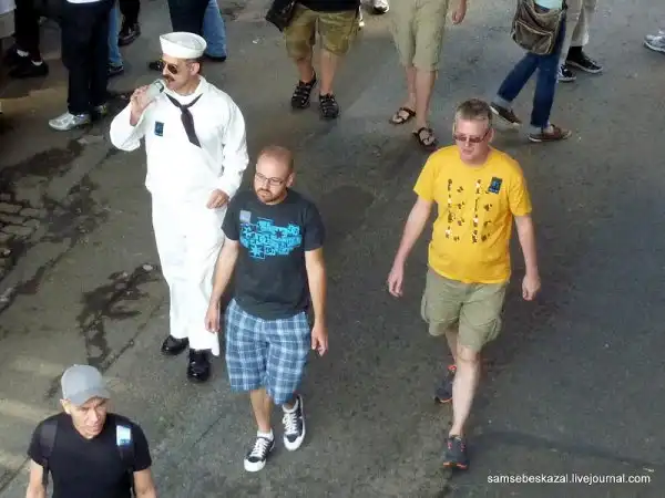 Со стороны входа нескончаемым потоком движутся все новые и новые парочки мужиков. Причем, если одни выглядят более-менее нормально (хотя бы в одежде).